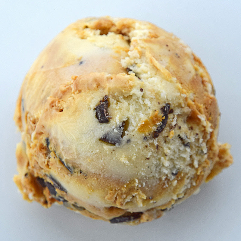 Creamy vanilla ice cream blended with chocolate chip cookie dough & dark chocolate flakes