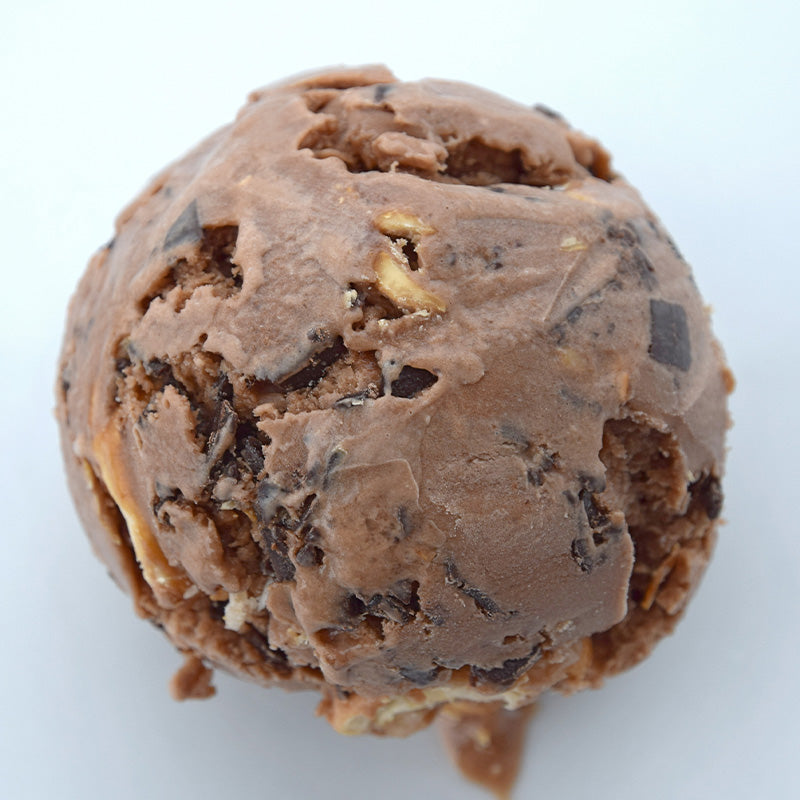 Chocolate ice cream with dark chocolate, dulce de leche & whole cashews
