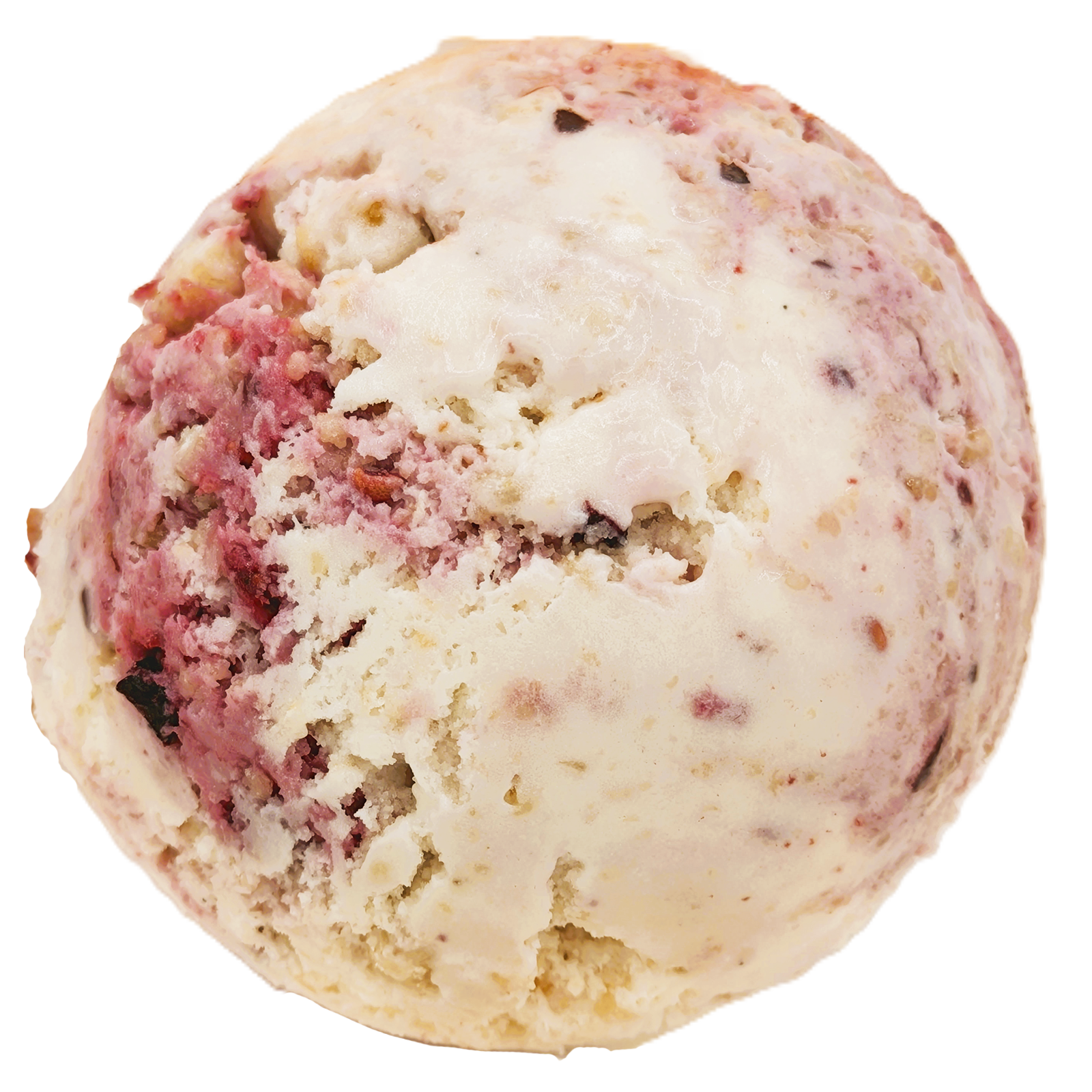 Cheesecake ice cream spiked with tangy cheesecake bites, graham cracker crust, & strawberry swirl
