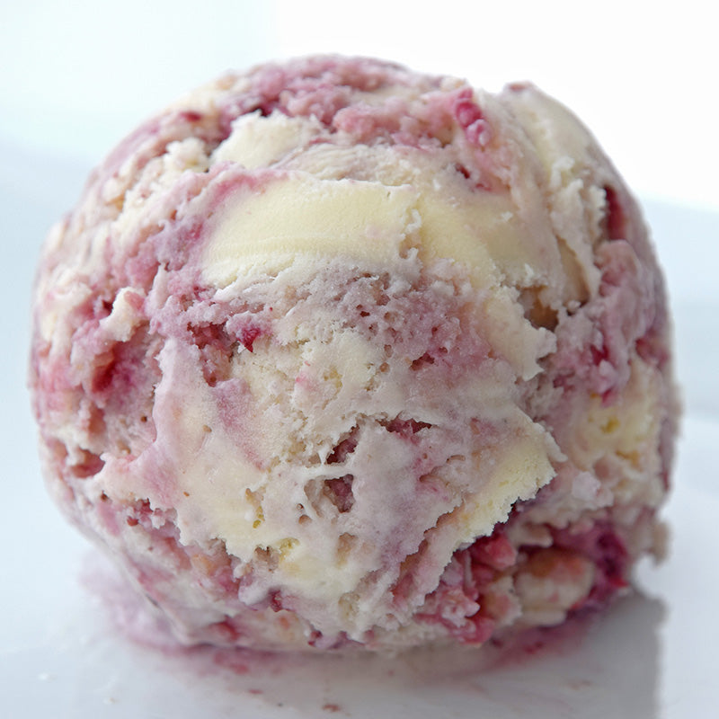 Fresh-squeezed lemon sorbet with real lemon zest and a generous swirl of all-natural raspberry