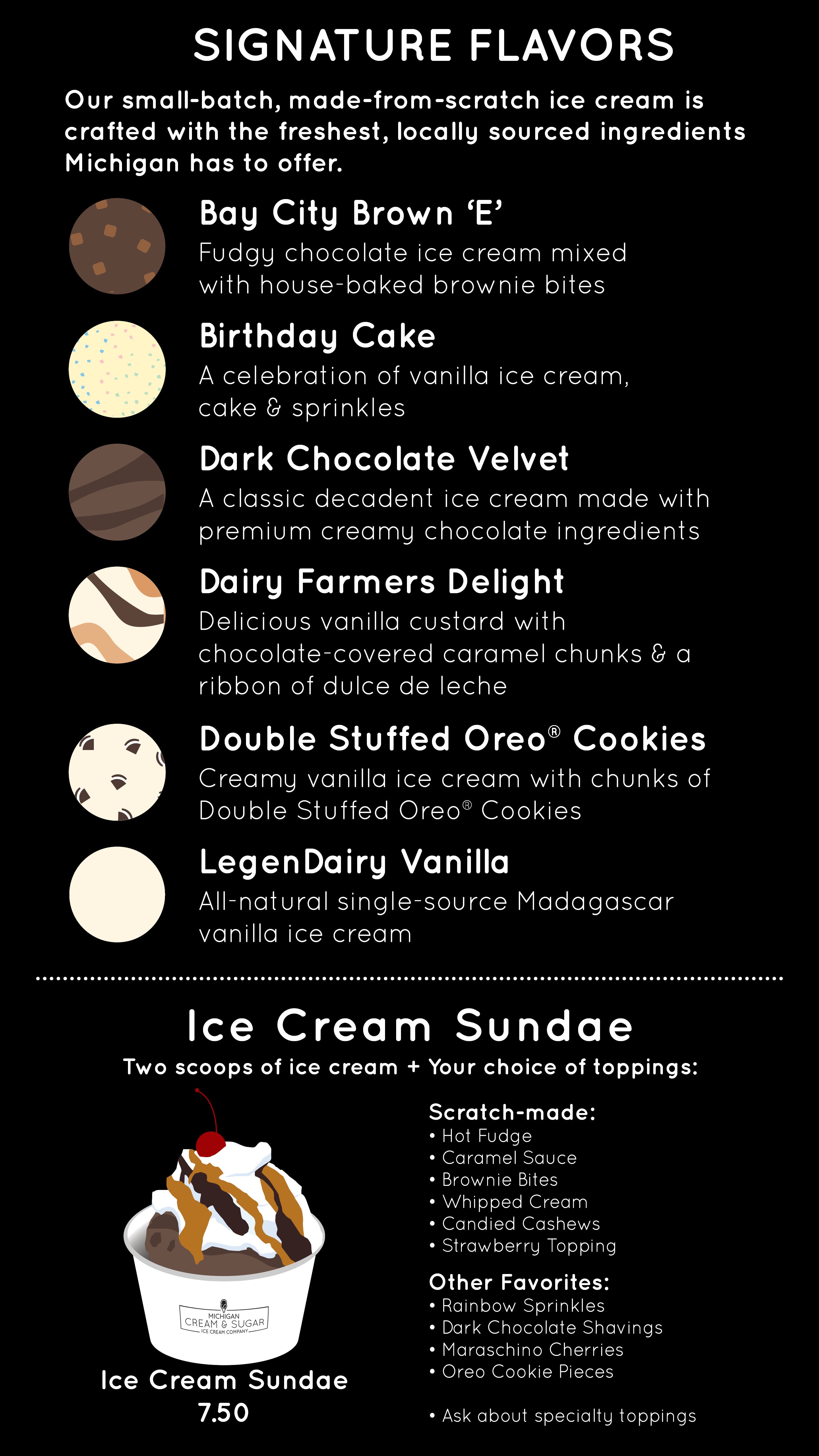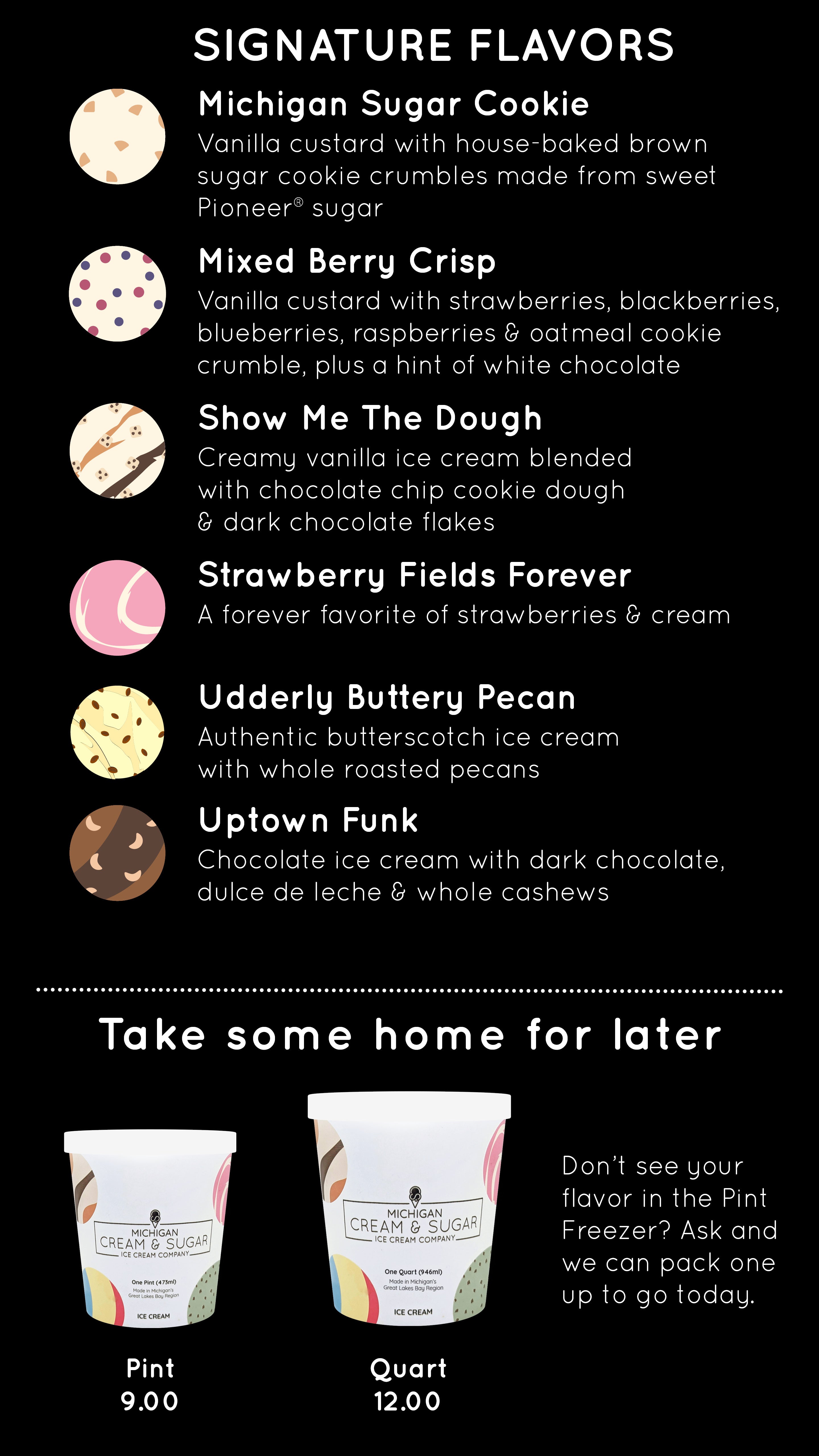 A seasonal medley of Michigan grown apples, blueberries, and cherries swirled in a sweet cinnamon base.